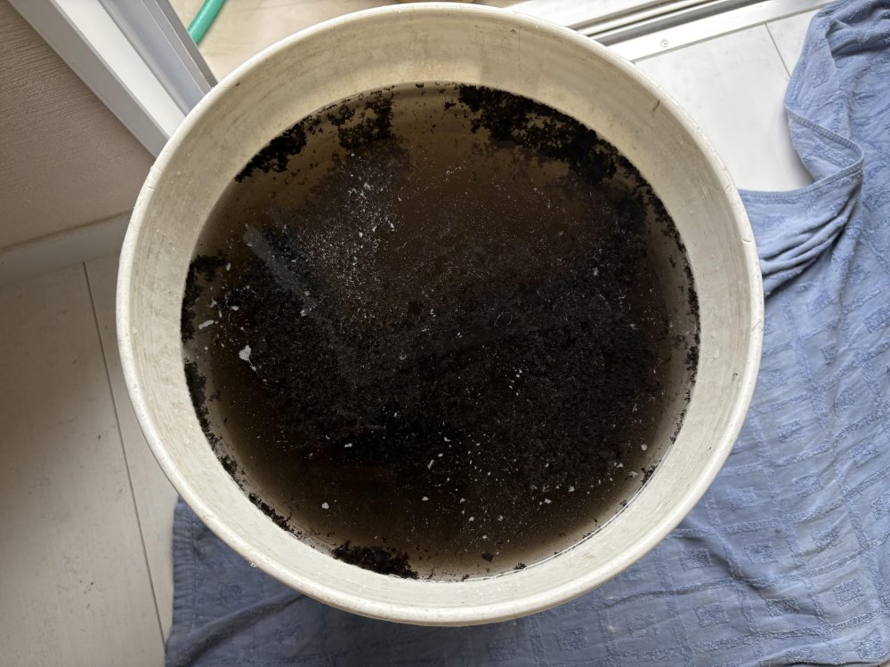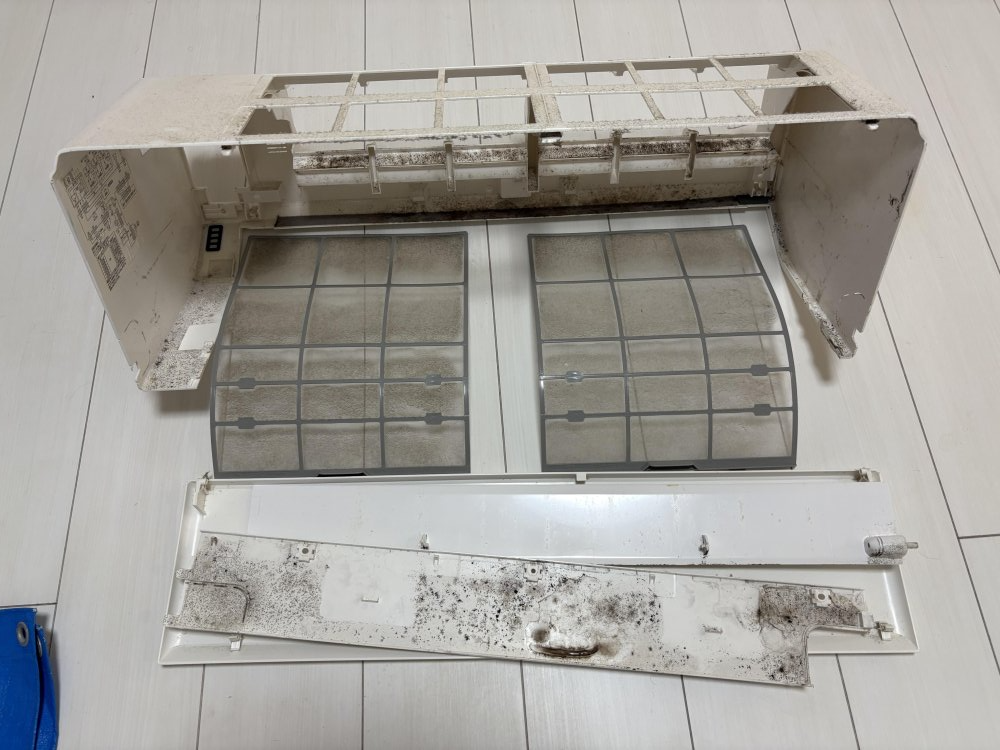 清掃で出てきた汚水には風の出てくるファンに詰まっていたホコリやカビが