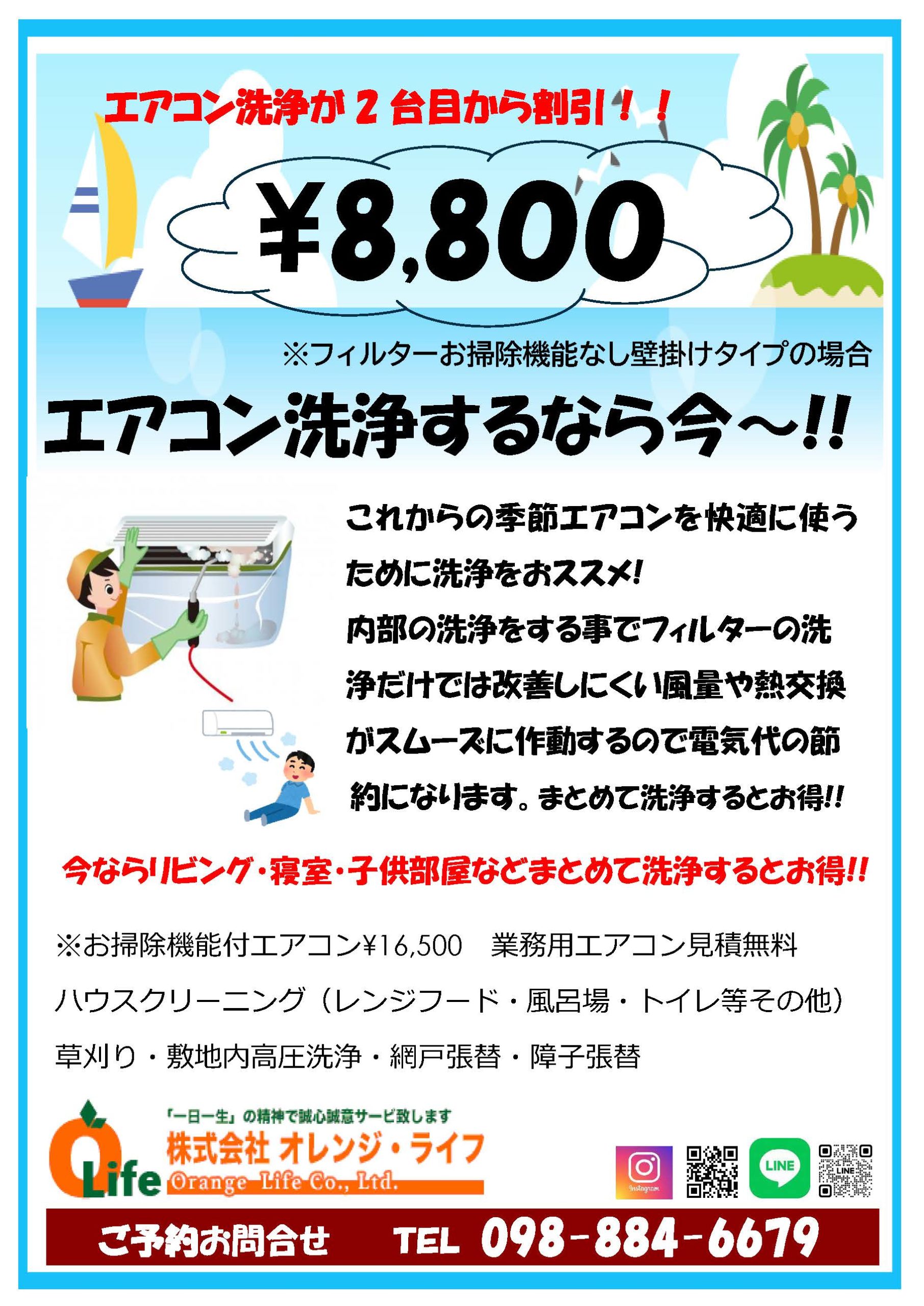 オレンジ・ライフでは、本格的な暑さが来る前に是非エアコンクリーニングをおすすめ致します。👍